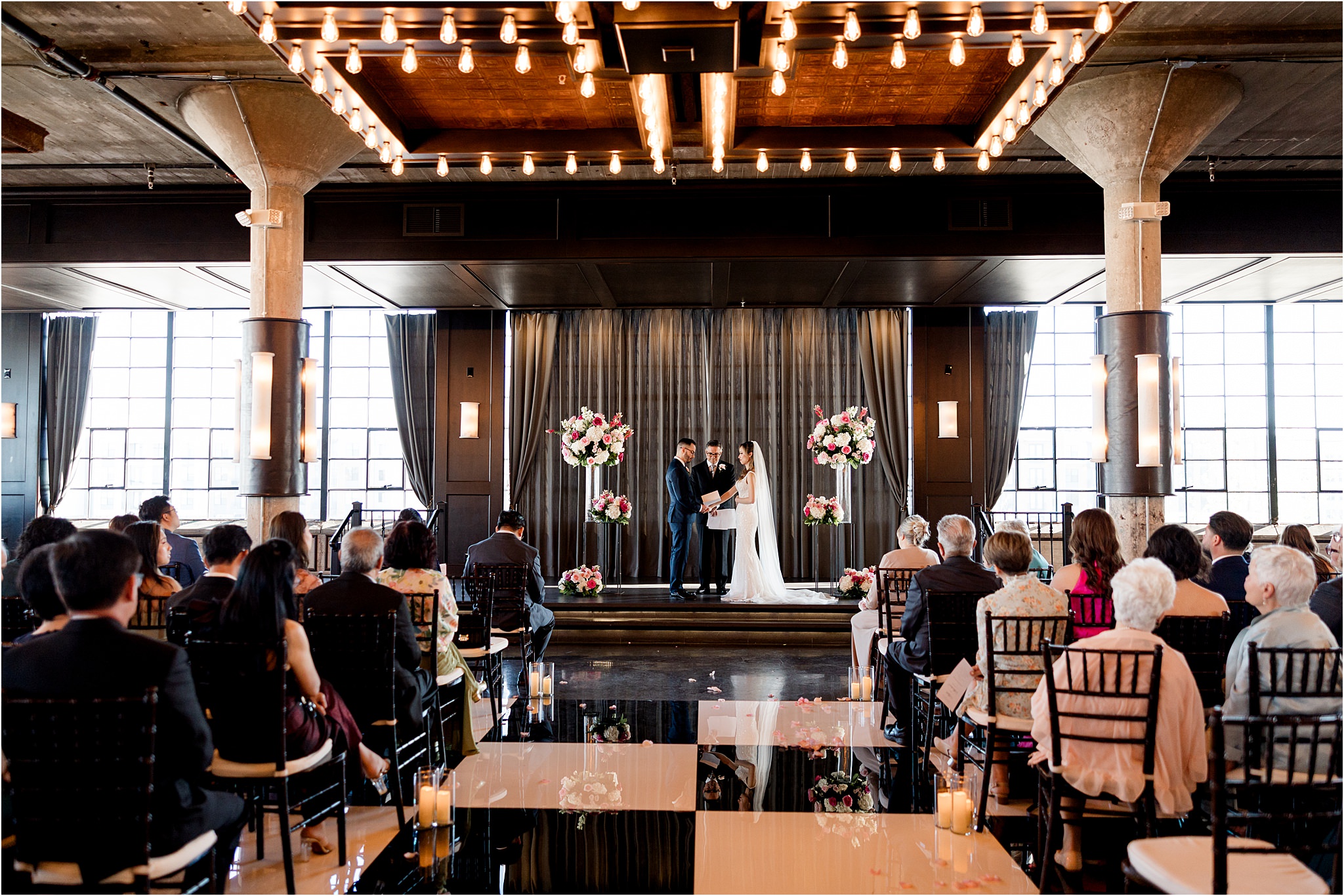 Every detail of Nghi and Michael’s wedding was thoughtfully curated. The ceremony was intimate yet grand, with natural light pouring in and highlighting the couple as they exchanged vows. As the sun set, the space transitioned into a candlelit reception that felt both elegant and electric. The combination of luxury textures, refined color palettes, and dramatic lighting made every photograph feel timeless and editorial.